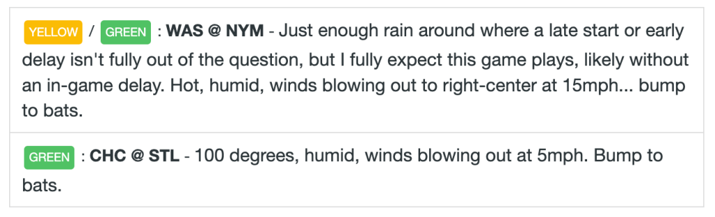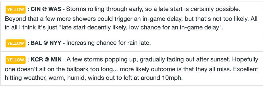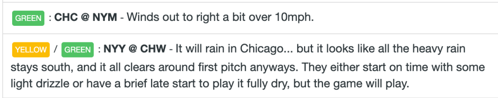 I’ll have some player ranks added here once we get starting lineups. Check back around 4PM ET for those!