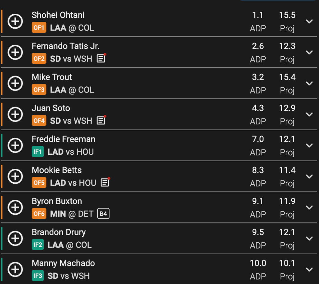 The Orioles get Luke Weaver today in Camden Yards. We are very excited about this. They are very easy to get to in drafts and until that changes, they are going to be my most owned stack by a long shot. Gunnar Henderson, Cedric Mullins, Adley Rutschman, Anthony Santander are my priority targets, but I’ll probably mix in newly promoted rookie Jordan Westburg in some builds as well.